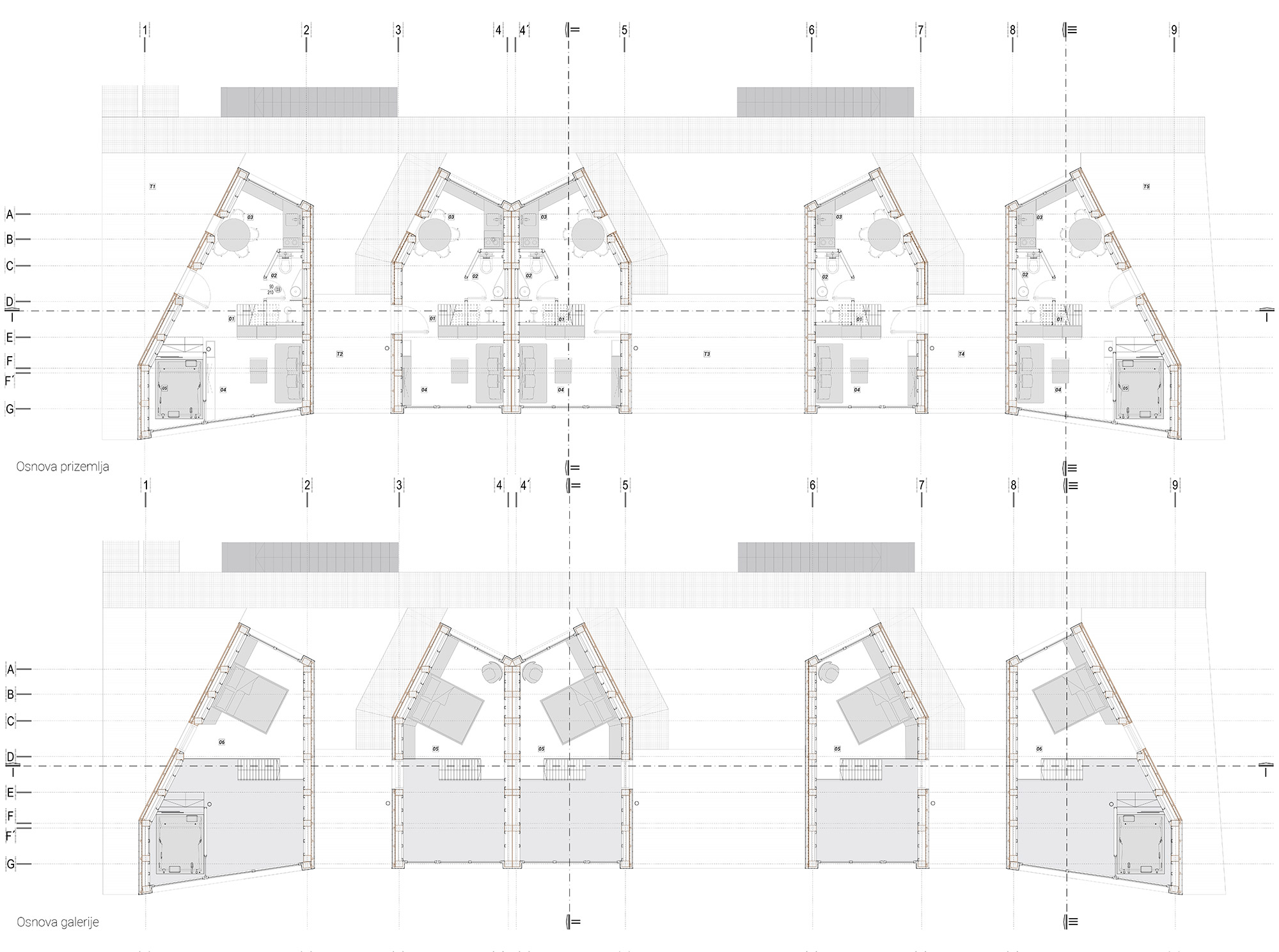 Galerijski prostor u kome se nalazi spavaća zona, posredno je orijentisan ka reci, povučen sa fasadne ravni, stvarajući istovremeno utisak povezanosti i prisutnosti, ali i intime i mira.