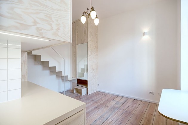 Na prvi pogled, sve u ovom mikro stanu u Berlinu od 21. kvadrata izgleda kako treba… tu je čak i stepenište napravljeno od čelika koje izgleda sjajno. Ima čak i sigurnosnu ogradnu. Ipak, nije baš sve tako sjajno.