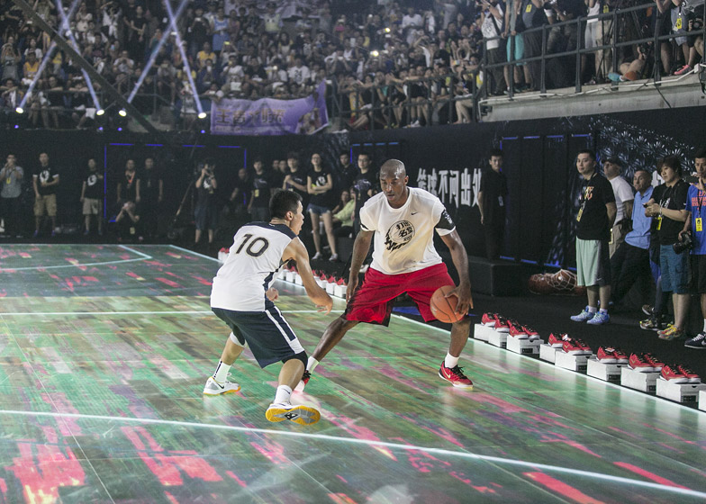 Za potrebe treninga s NBA zvezom Kobe Bryantom, sportska kompanija Nike napravila je u Šangaju teren od LED ekrana osetljiv na dodir… patika!