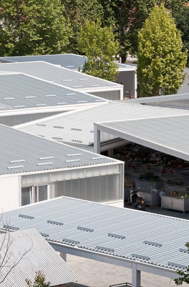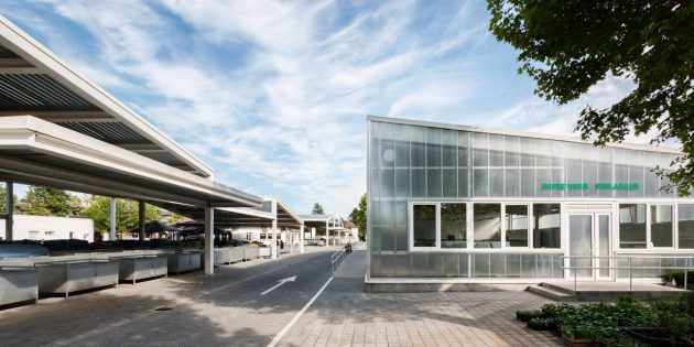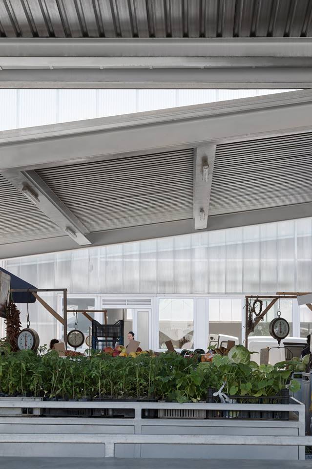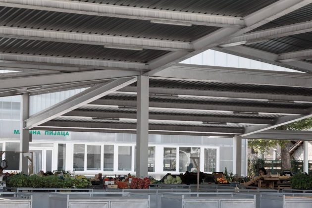 Krovni pokrivač je trapezasti čelicni lim, dok je objekat mlečne hale izveden u polikarbonatu. Pijačne nadstrešnice su sa bočnih strana otvorene tako da se objekat ventiliše prirodno.