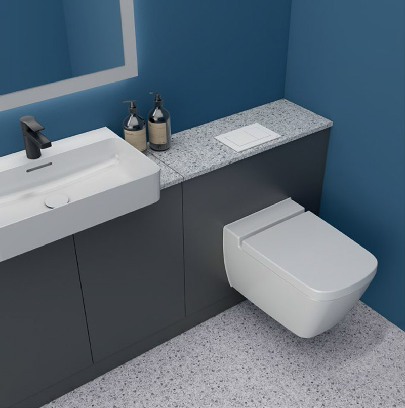 Ne samo da rešava problem ugradnje vodokotlića ispod prozora, već on takođe omogućava da vodokotlić i umivoanik budu u jednoj ravni.