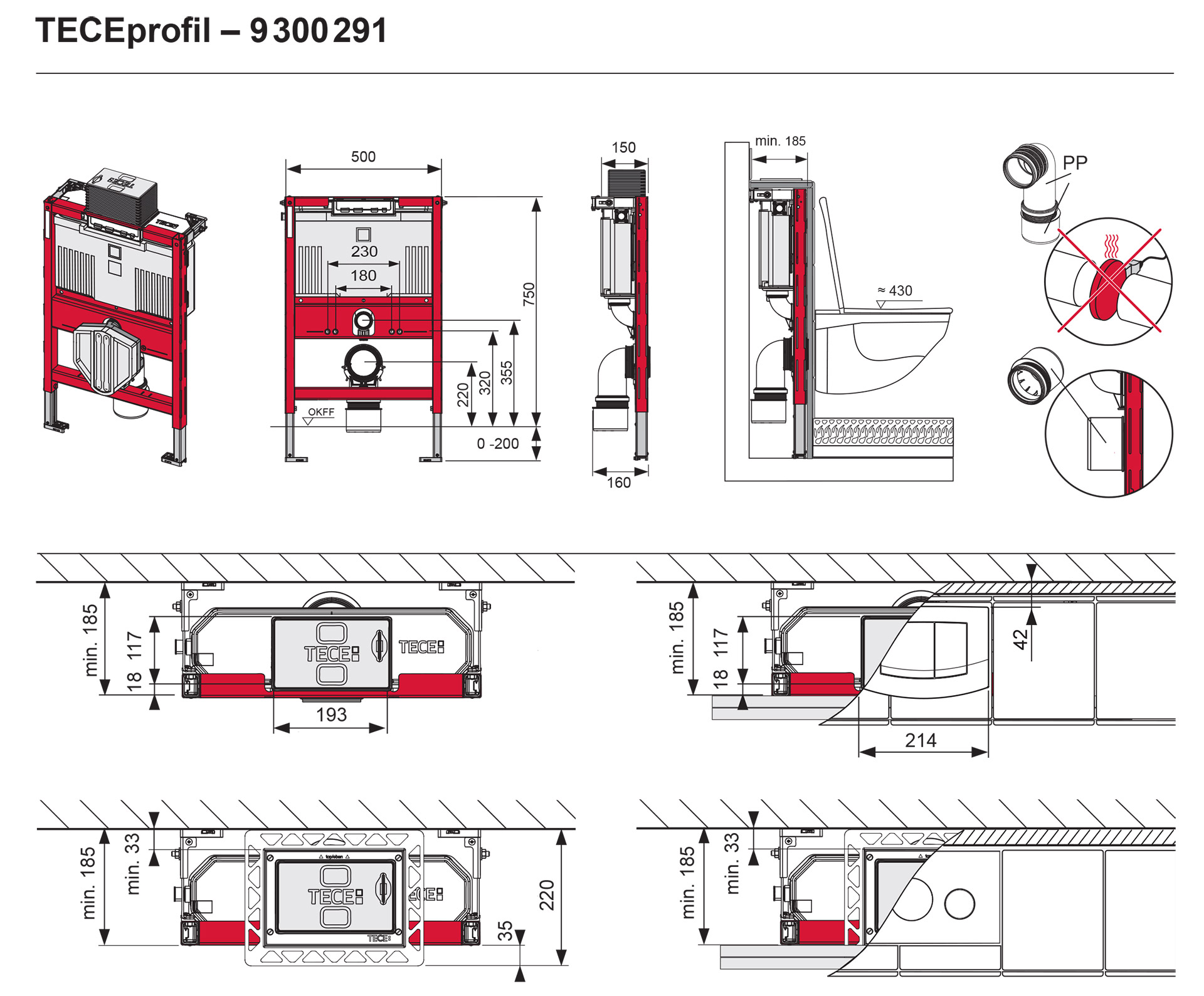 TECEprofil ugradni vodokotlić ima rezervoar od 8 litara, sa mogućnošću ispiranja od 6/4,5/4 litara i mala aktivacija od 3/2,5 litara. Ovaj vodokotlić kao i svi TECE vodokotlići imaju mogućnost korišćenja bilo koje ručne TECE aktivacione tipke.