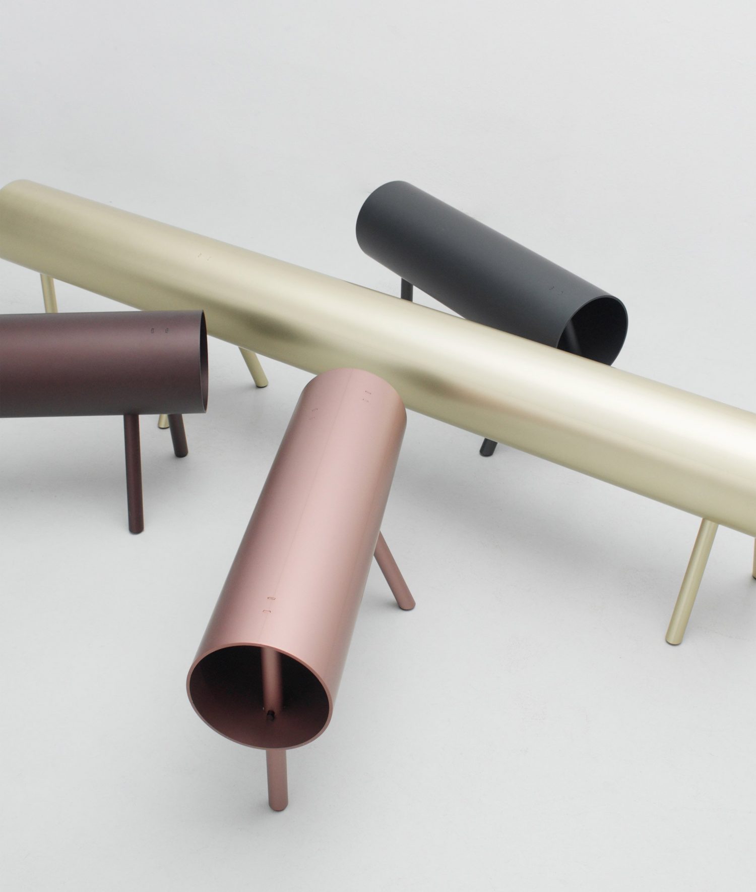 Najveća prednost korišćenja aluminijuma jeste ta što se on mogućnost anodizacije. To je zapravo tehnika koja stvara jak oksidacioni sloj na površini materijala koji može biti i u boji. Tako je svaki komad nameštaja iz kolekcije Tunnel dostupan je u pet različitih boja: šampanj, tamno crvena, roze, crna i prirodna siva boja aluminijuma.