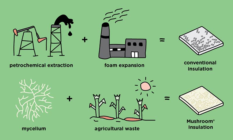 Kombinovanjem poljoprivrednog otpada s gljivom micelijum dobija se materijal s odličnim izolacionim sposobnostima koji je pritom potpuno prirodan.