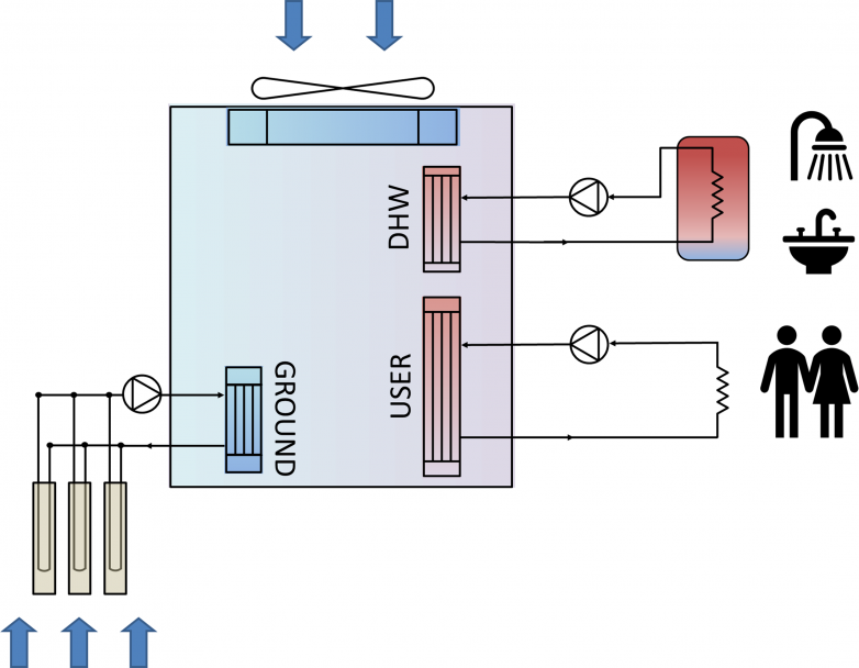 Inovativna pumpa DSHP oslanja se na izvore toplote iz vazduha ili iz zemlje u zavisnosti od operativnog moda i klimatskih uslova. Ona sama bira najpogodniji toplotni izvor za grejanje ili hlađenje pa tako može da funkcioniše kao toplotna pumpa vazduh-voda ili zemlja-voda. Tokom zime, ona može da obezbedi toplu vodu za grejanje zgrade koristeći toplotu iz vazduha ili iz zemlje, dok tokom leta koristi vazduh ili zemlju kao hladnjak za hlađenje prostorija. Ova pumpa obezbeđuje toplu vodu za domaćinstvo i tokom leta zahvaljujući generisanom višku toplote.