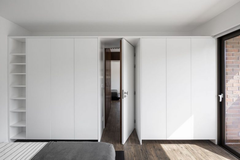 Kako bi se pojednostavio enterijer, arhitekta je uz pretežno bele površine, na zidovima i vratima koristio prirodno drvo.