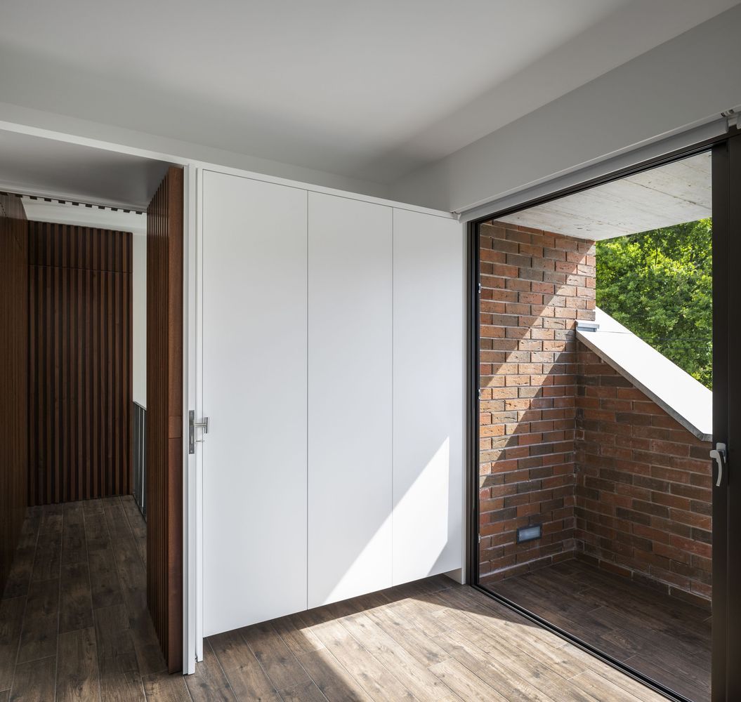 Kako bi se pojednostavio enterijer, arhitekta je uz pretežno bele površine, na zidovima i vratima koristio prirodno drvo.