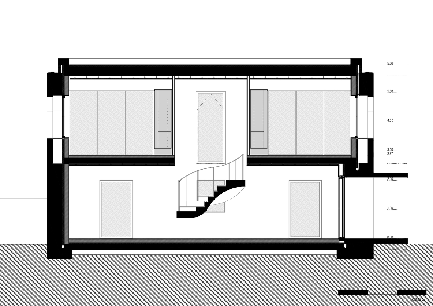 Nova struktura je u potpunosti ograničila okvire postojeće, te dodatnu vezu sa spoljašnjošću jedino horizontalni betonski element, koji istovremeno kontroliše i intenzitet sunčeve svetlosti.