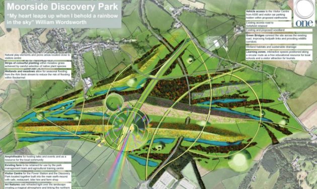 Nuklearna elektrana Moorside u Kambriji, ruralnom delu Engleske, trebala bi da bude završena do 2024. godine. Konkurs, koji je organizovala RIBA (Royal Institute of British Architects) i Institut za pejzažno uređenje u Londonu, u potrazi je za kreativnim rešenjem pejzažnog uređenja celog lokaliteta. Predlog sa dugom, nazvan Discovery Park, ušao je u uži izbor zajedno sa još četiri rešenja.