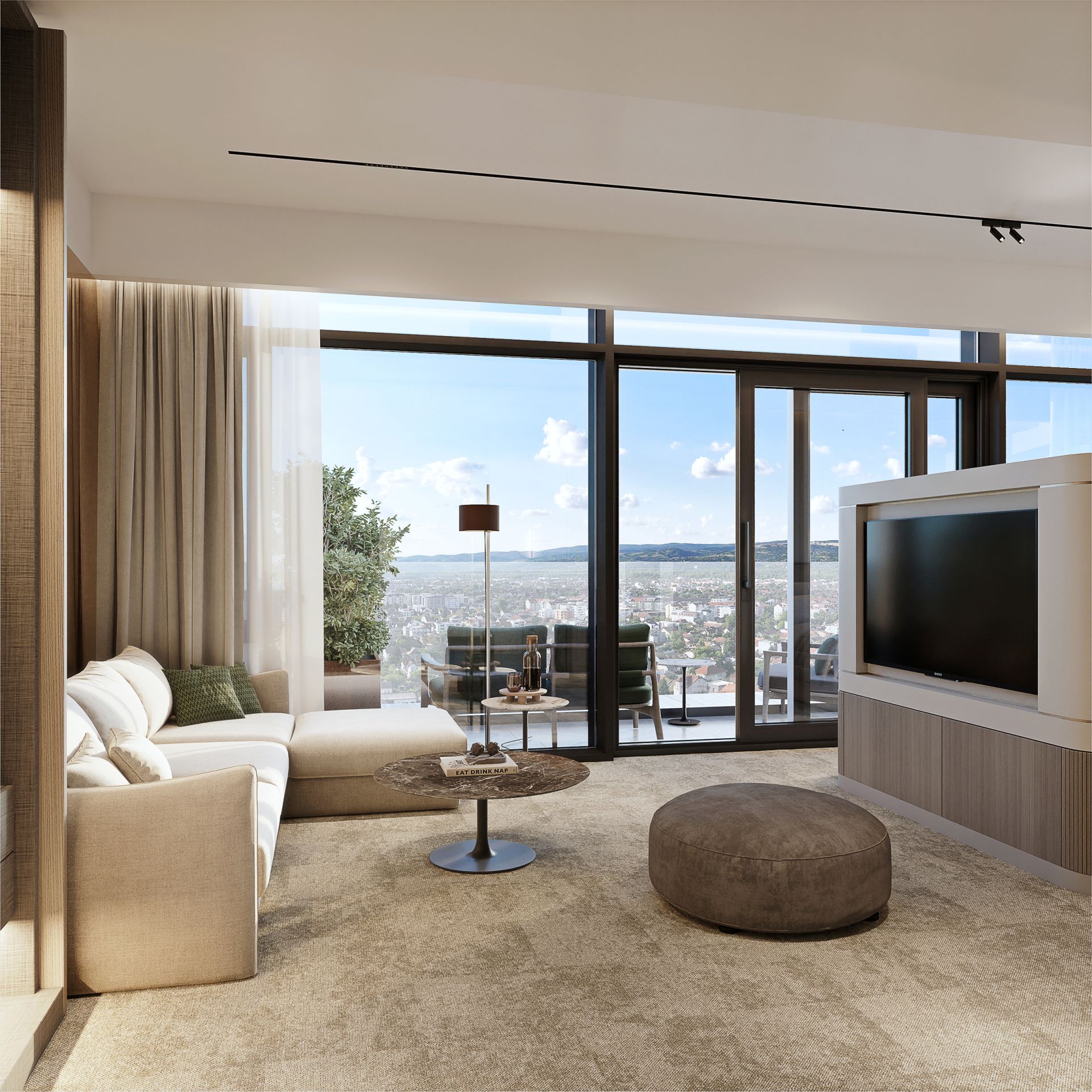 Sa panoramskim pogledom na grad, luksuznim enterijerom i potpunom uslugom — od monumentalnog hola visine 10 m do upravljanja nekretninom kroz Novella hotel sistem – ovi apartmani predstavljaju investiciju koja donosi i profit i prestiž.