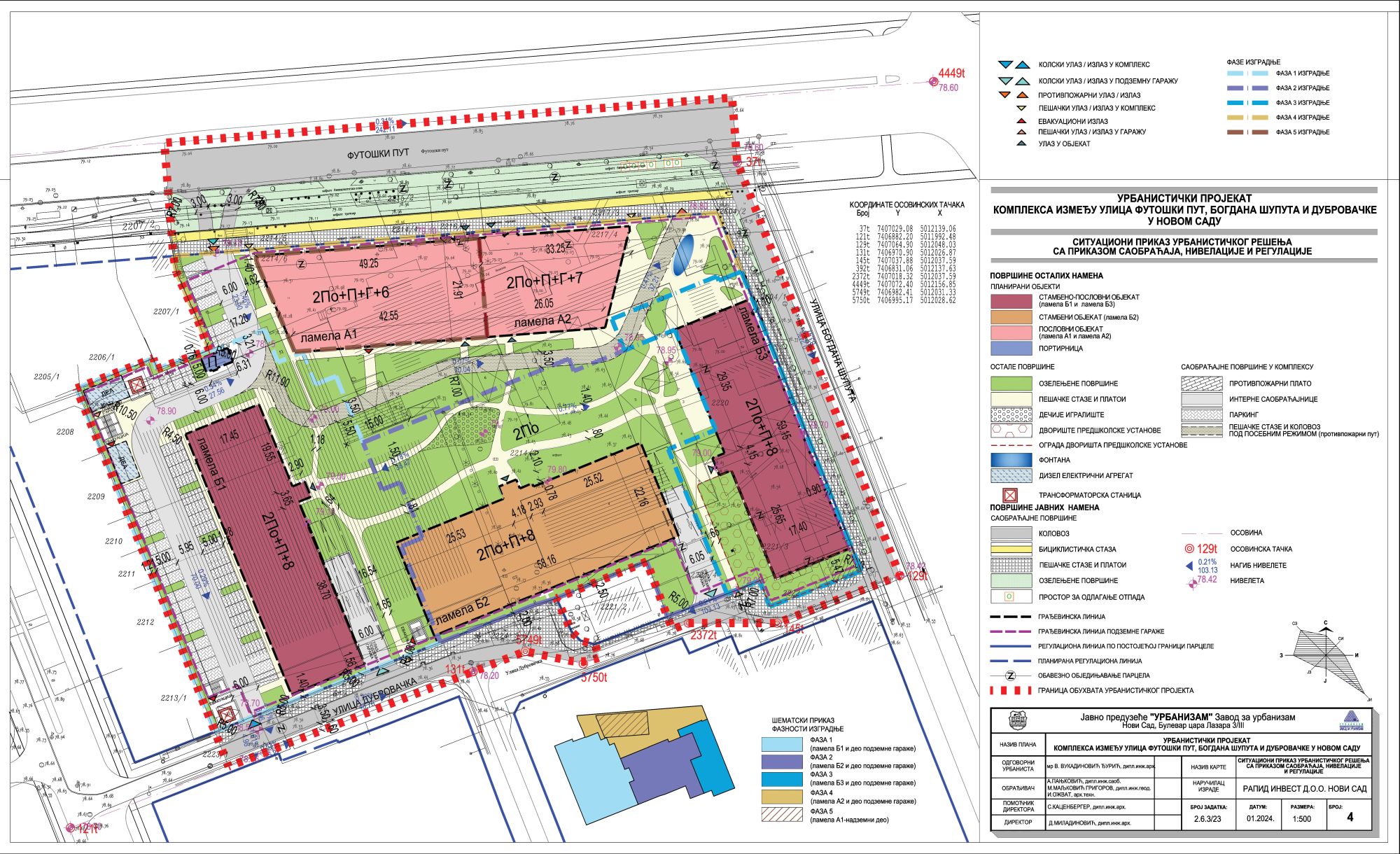 Situacioni prikaz urbanističkog rešenja sa prikazom saobraćaja, nivelacije i regulacije