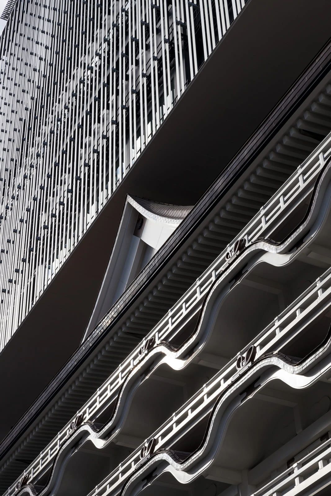 Prefabrikovani betonski i aluminijumski paneli korišćeni su prilikom obnove karahafu zabata na objektu Togo Muranoa, dok je fasada novog hotela obmotana aluminijumskim rebrima.