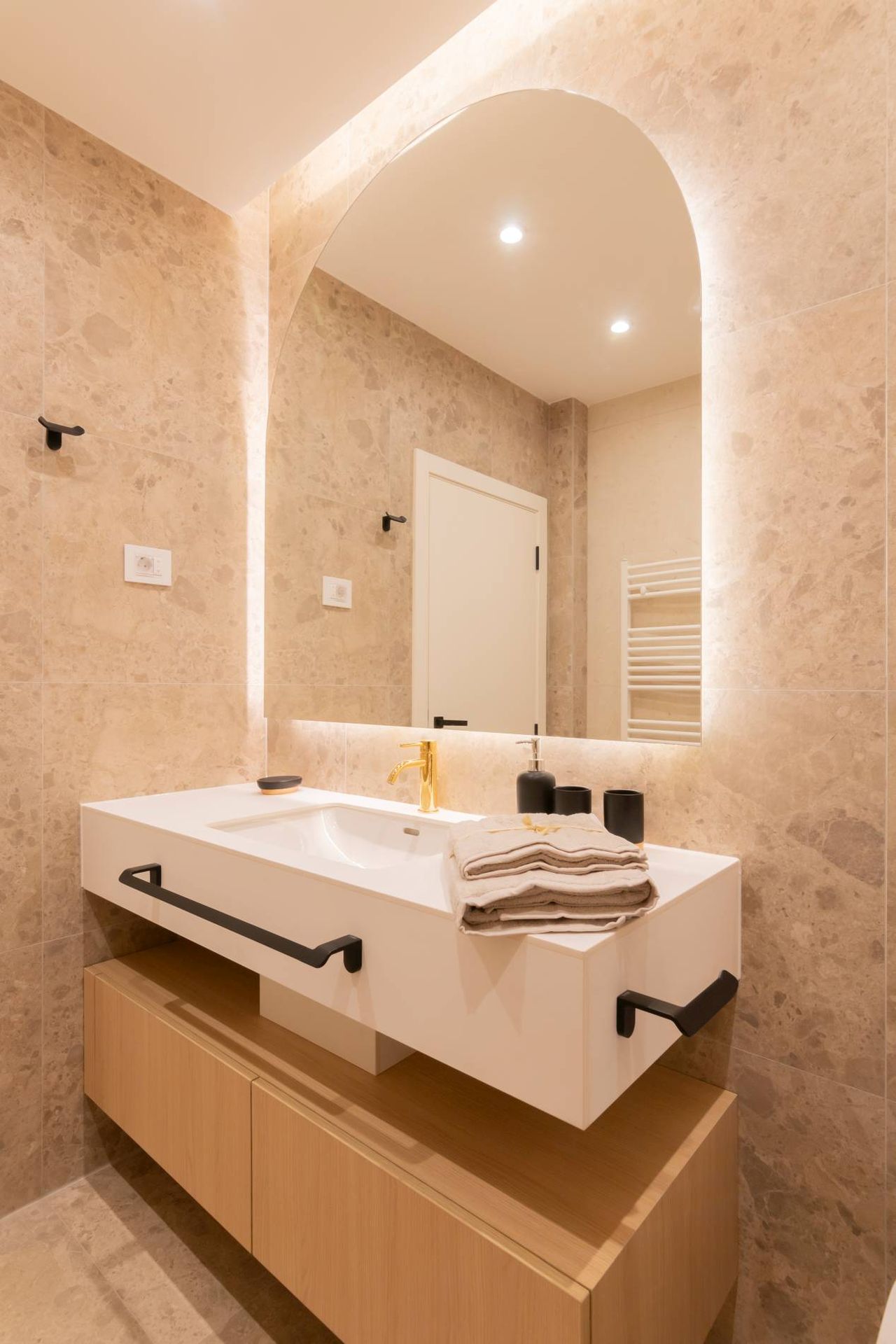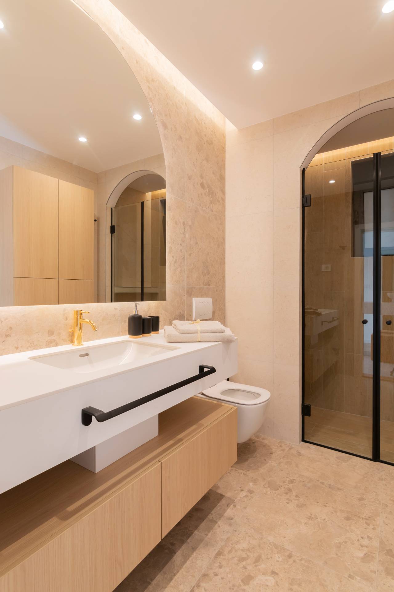 Kupatila su osmišljena tako da imaju različit dizajn, ali ih spaja obilje prostora za odlaganje.