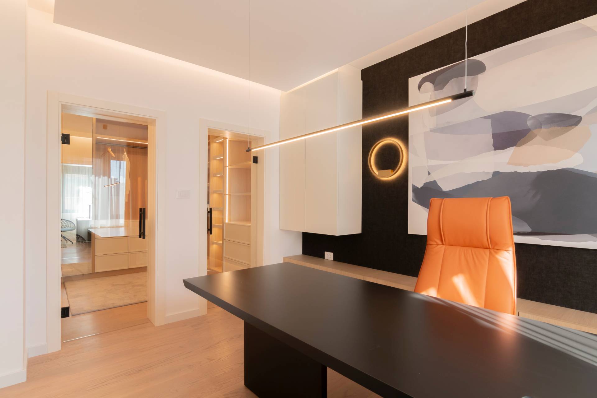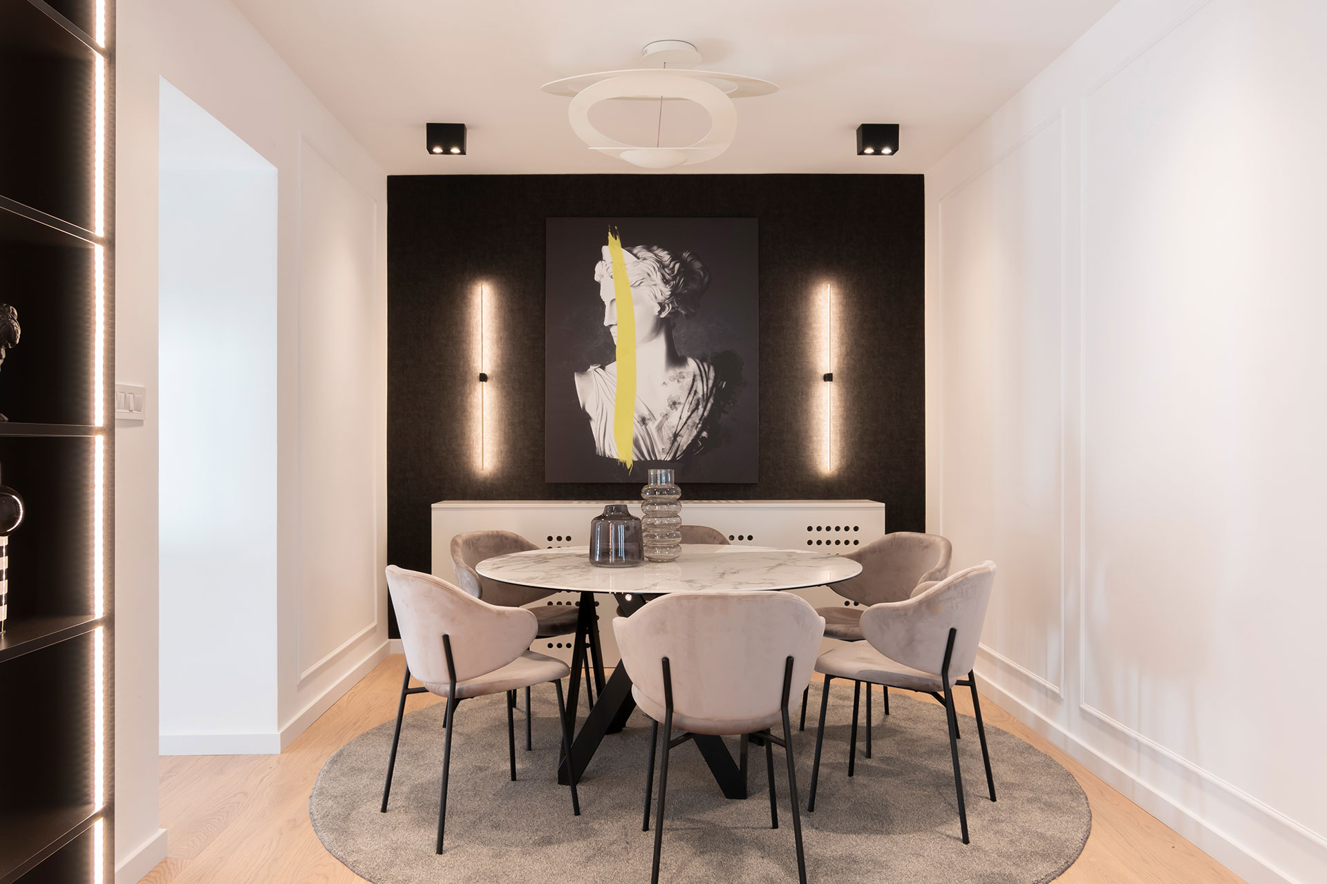 „Novi vlasnik je želeo da osveži prostor,“ rekla je, što je dovelo do njegove sveobuhvatne intervencije. Dizajn je bio usmeren na stvaranje atraktivnog enterijera uz kombinaciju klasičnih i modernih elemenata.