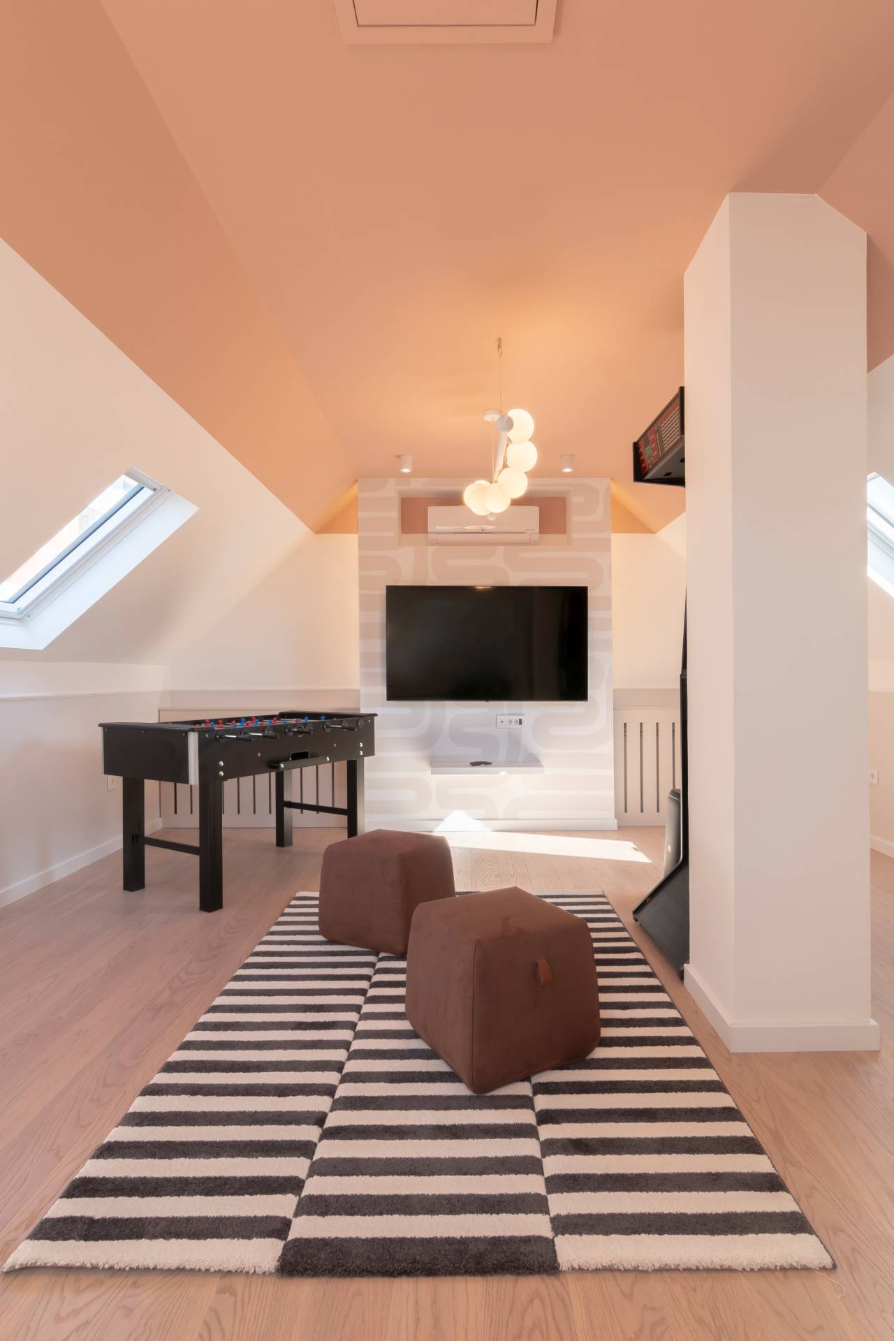 U potkrovlju je organizovan prostor za zabavu sa stonim fudbalom, video-igrama…