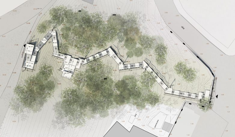 Staza koju su trasirali meštani dobila je moderno stepenište sa krakovima koji se slobodno lome prema terenu, dok u isto vreme omogućavaju prirodi da ponovo osvoji krajolik.