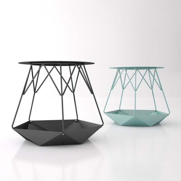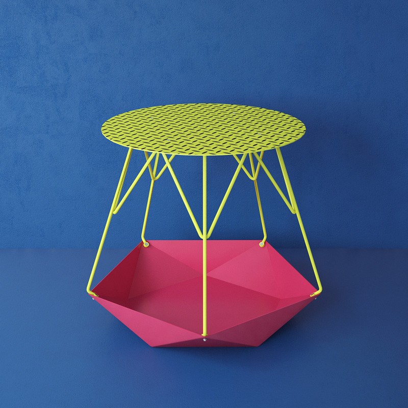 Naziv KRATER (Krater – antička grčka činija) usledio je od forme koja se dobila origami tehnikom. Dizajneri su hteli da sto bude u industrijskom stilu tako da je izrađen najvećim delom u limu. Varijacije su postignute završnom obradom stola u različitim bojama.