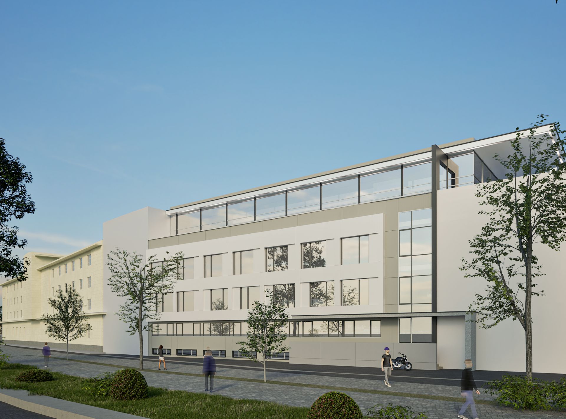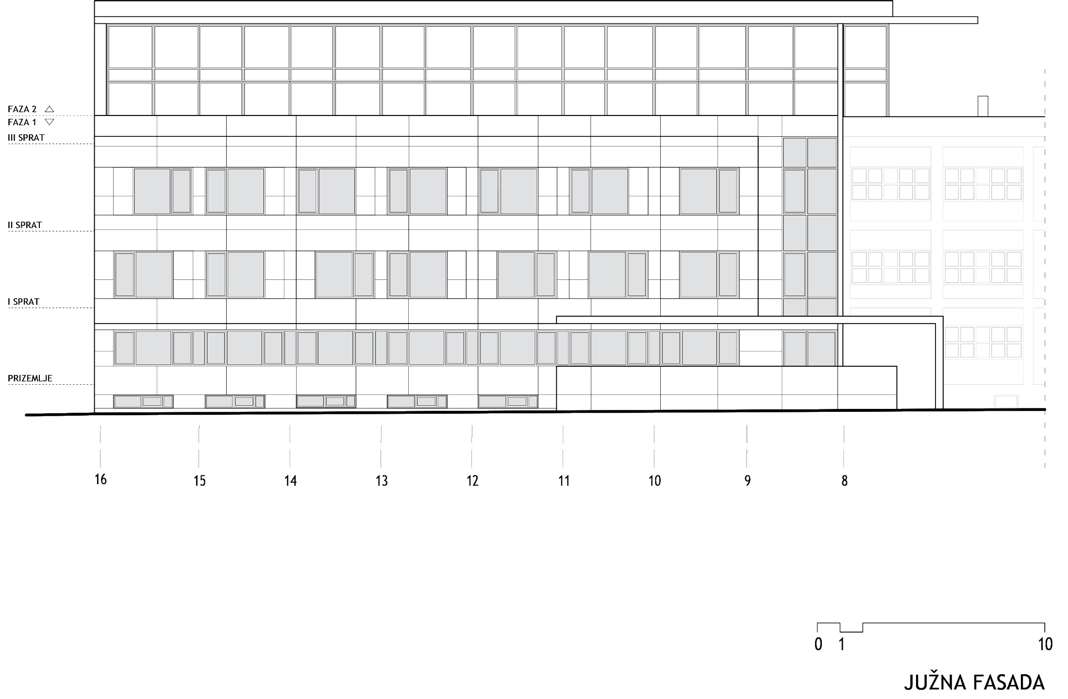 Projektom rekonstrukcije predviđena je i nadogradnja postojeće zgrade (predviđena za realizaciju u II fazi). Na njenom vrhu pojavljuje se novi, dodati dvovisinski volumen, transparentan i fluidan, poput intervencije na objektu „1“, povučen u odnosu na fasadne ravni donjih spratova čime se na poslednjoj etaži dobijaju prohodne krovne terase.