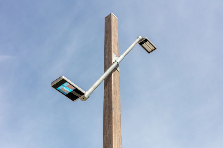 Svaka ulična lampa ima i držač koja je napravljen od recikliranog stuba za skele, podražavajući jedan ili dva energetski efikasna LED izvora svetlosti.