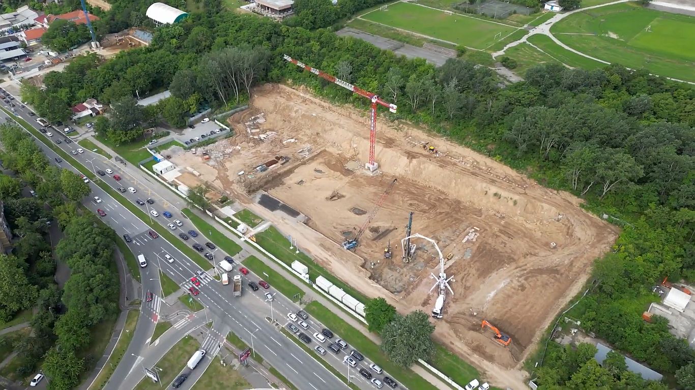 Trenutno se kraju privode radovi na obezbeđenju lesnog odseka na zadnjoj granici parcele, te radovi na dubokom fundiranju gde će biti ugrađeno 625 šipova.
