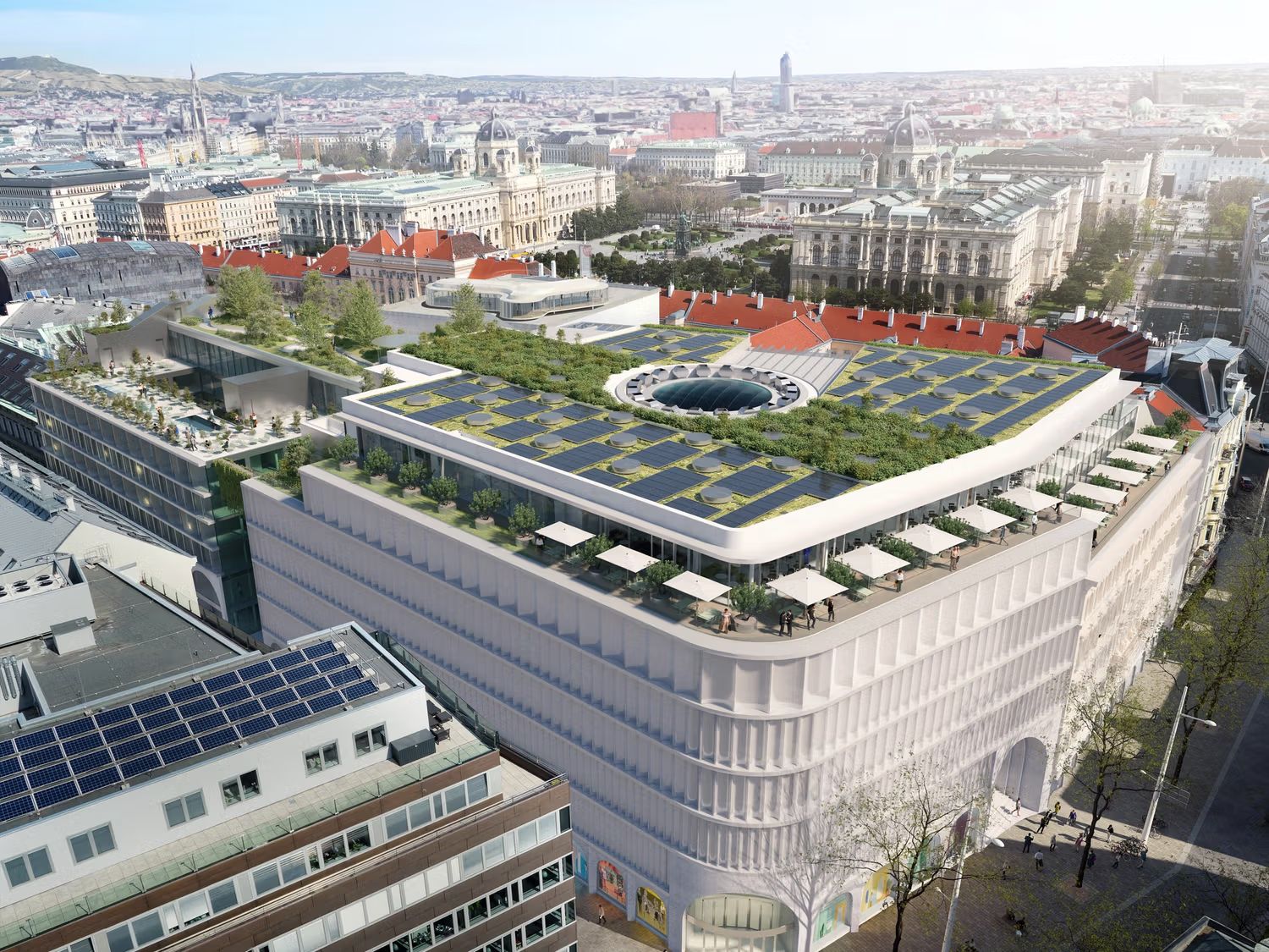 Planirani hotel u zadnjem delu zgrade i javno dostupna krovna terasa su još uvek deo koncepta korišćenja. Terasa mora biti sprovedena jer je tamo ugovoreno pravo korišćenja (servituta), što je bila velika briga za okrug. Ako otvoreni prostor ne postoji, neće biti obaveštenja o završetku, kako je naglašeno u bečkoj Gradskoj kući.
