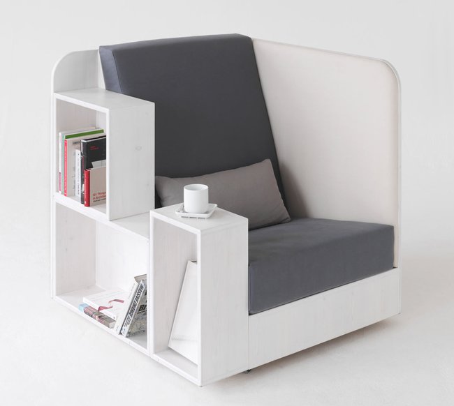 Ova fotelja štedi prostor i ujedno izlazi u susret svima onima koji ne znaju gde će sa silnim knjigama.