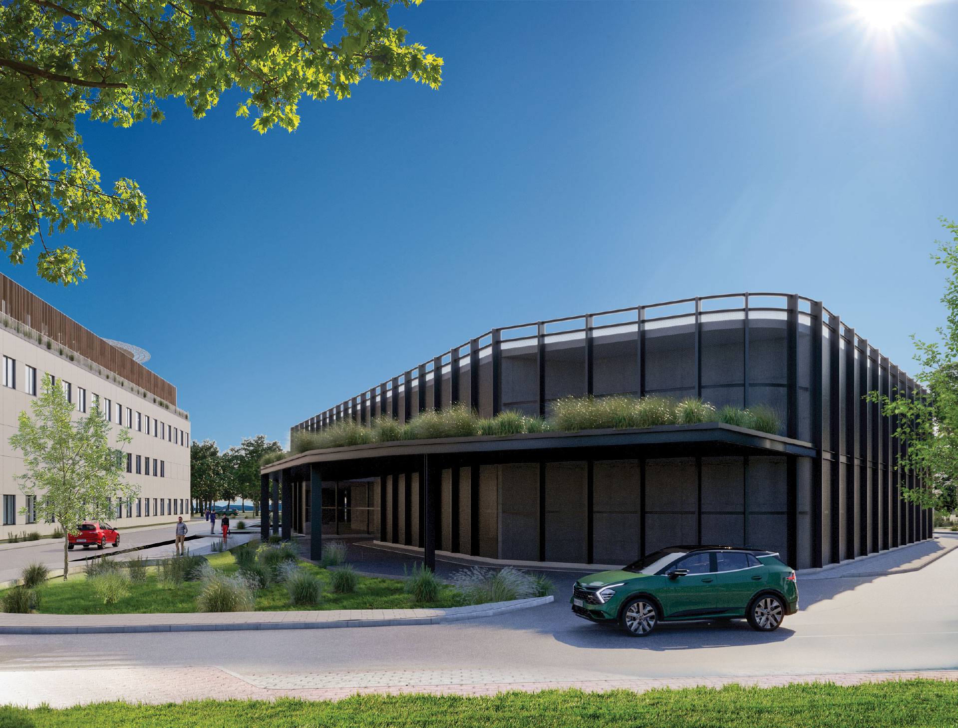 U okviru garaže namenjene posetiocima formirano je 286 parking mesta od čega je 31 PM namenjeno licima sa posebnim potrebama. Na krovu glavnog objekta Opšte bolnice planirana je i izgradnja helidroma.