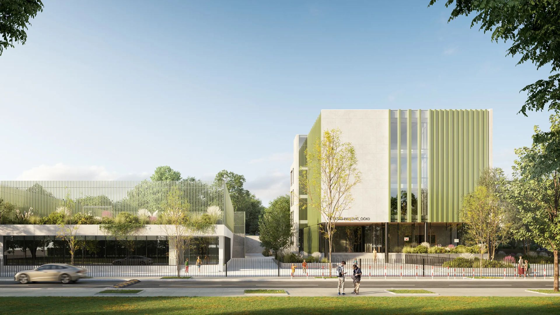 „Nova fiskulturna sala, delimično ukopana u zemlju, postaje deo pejzaža, dok njen krov pruža dodatni teren za aktivnosti na otvorenom, stvarajući jedinstvenu i funkcionalnu celinu koja spaja učenje, kretanje i prirodu u harmoničnu simbiozu“, kažu iz Kapaprojekta.