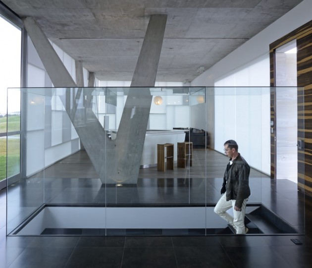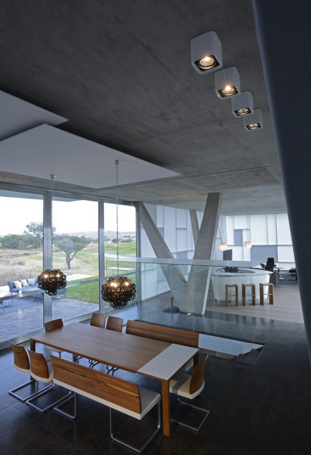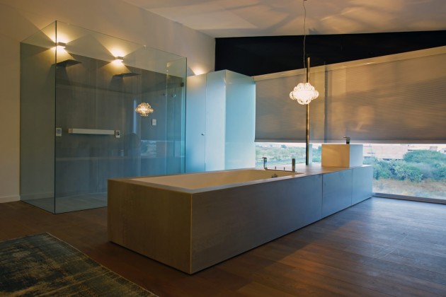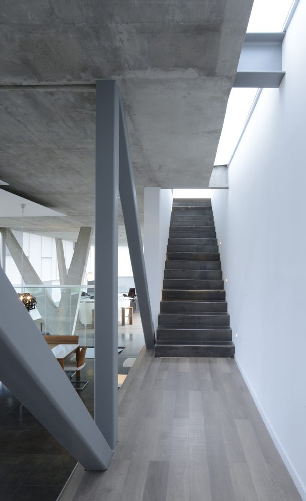 Sama kuća je zaista ogromna i u njoj preovlada beton i čelik. Strog minimalizam i čiste linije u enterijeru ublažene su toplom rasvetom i komadima od drveta, piše ArchDaily.