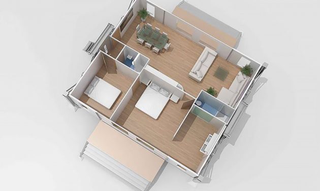Njihov objekat može da se spakuje na standardni kamion (na drona ćemo još malo sačekati) kako bi se isporučio na adresu gde će se sam sastaviti sa svega osam minuta. Iz kompanije navode da su objekti potpuno opremljeni kao i da se mogu slagati jedni na druge. Takođe, za njegovu instalaciju nisu potrebni temelji, a objekti se mogu čak postavljati i na kosinama kao i na neravnom terenu. Prema podacima kompanije, sve komponente su modularne tako da je svaki raspored panela, vrata ili prozora moguć. Objekat ima 65 kvadrata slobodnog prostora i 20 kubika skladištenog prostora.