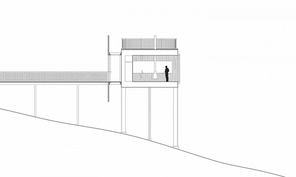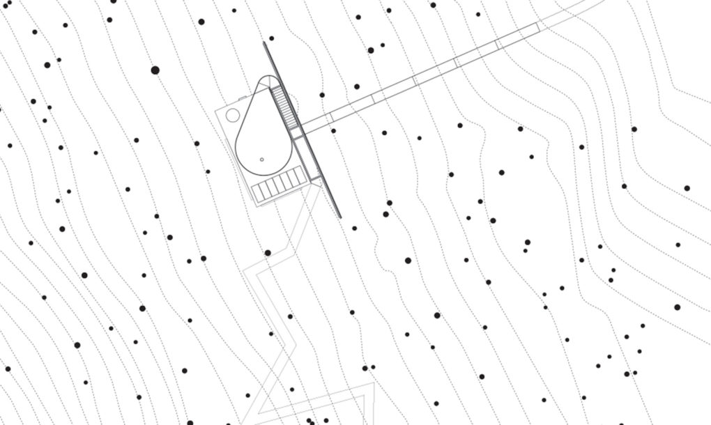Objekat od 55 metara kvadratnih projektovan je tako da služi kao mesto za mir, osamu i meditaciju. Gledano spreda, on izgleda kao fatamorgana u kojoj objekat lebdi iznad padine i nestaje u daljini.