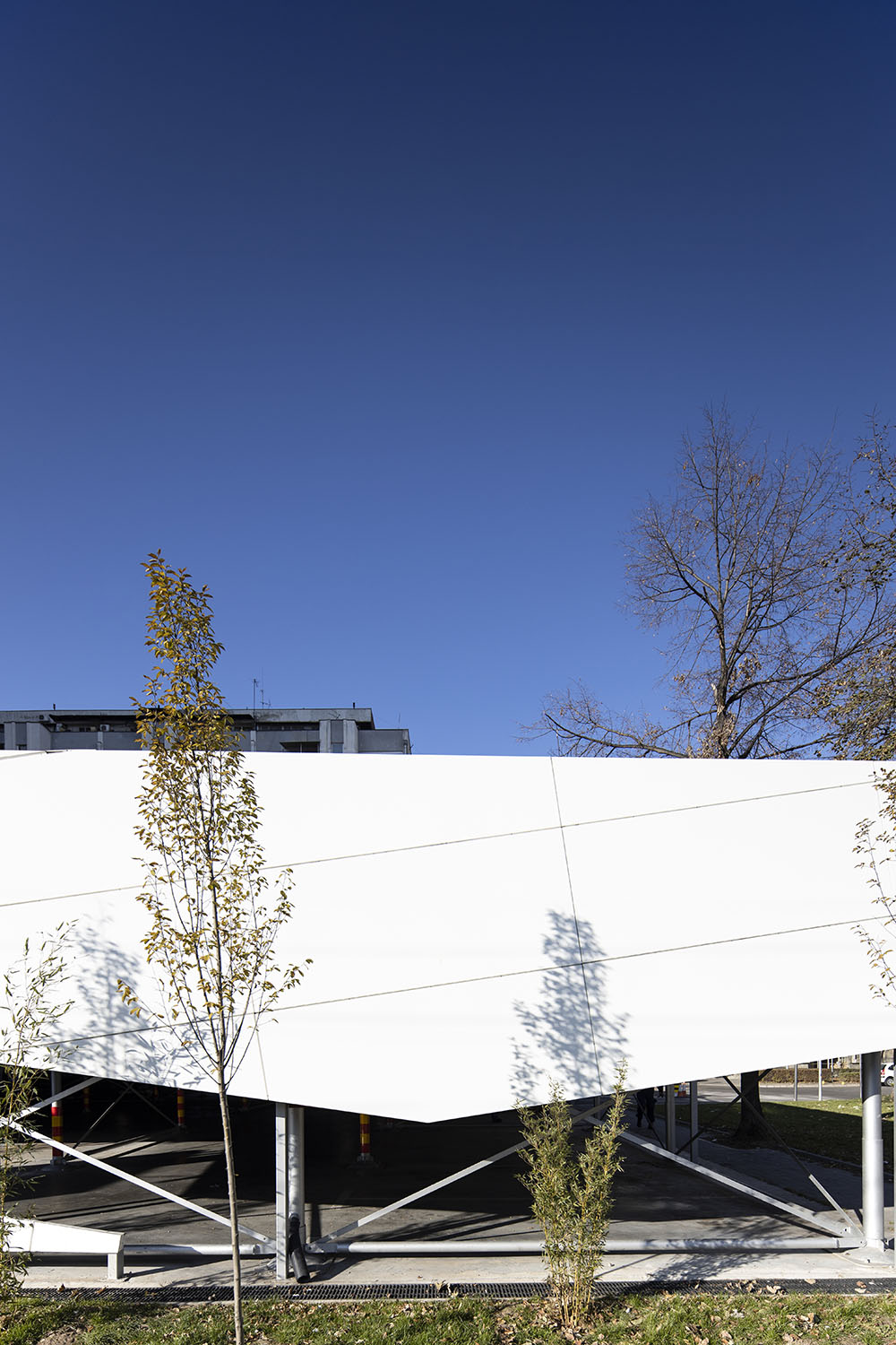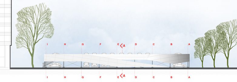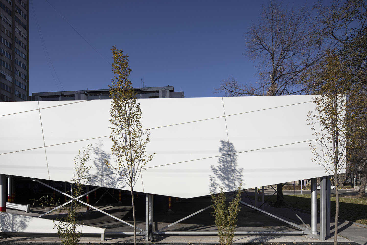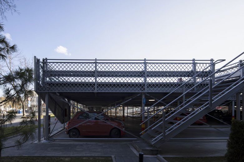 Konstrukcija otvorenog javnog parkinga je na principu fast-parka, sastavljena od montažnih i polumontažnih elemenata. Noseća konstrukcija je od duboko glavanizovanog čelika sa zaštitom i visokim procentom cinka.