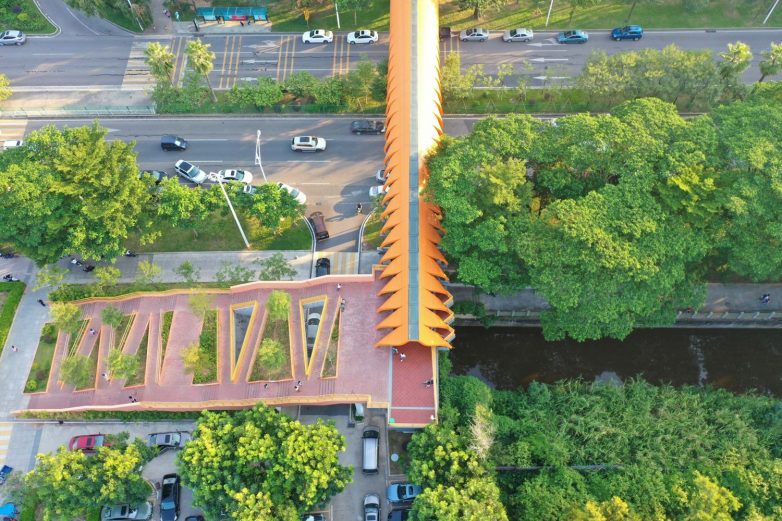 Južni kraj pasarele završava se serpentininom koja vijuga oko krošnji drveća. “Deca mogu da trče gore-dole kao da lete kroz šumu.” – ističu arhitekte za ArchDaily.