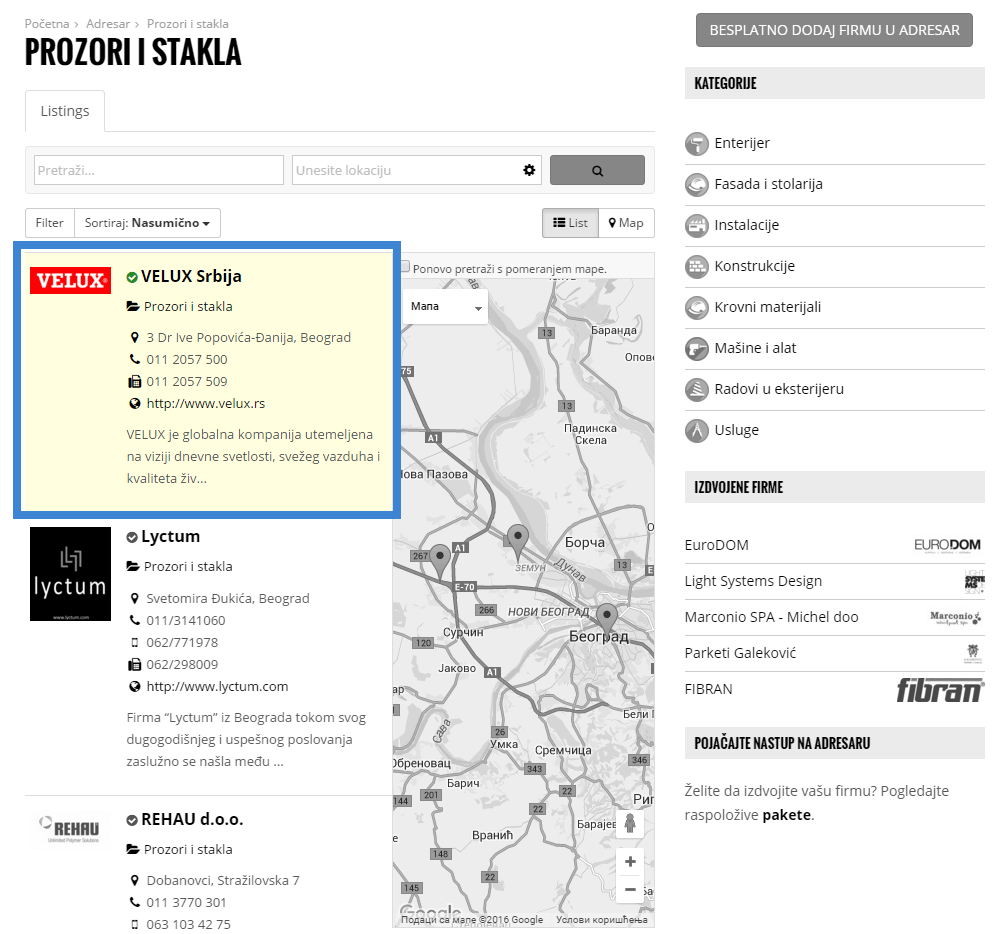 Ukoliko želite da upišete vašu firmu u Adresar u okviru portala Gradnja.rs, kako bi vas potencijalni klijenti što lakše pronašli, na raspolaganju su vam sledeće opcije: