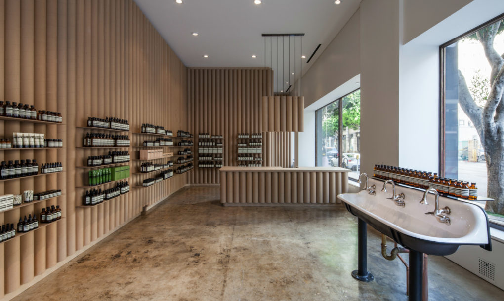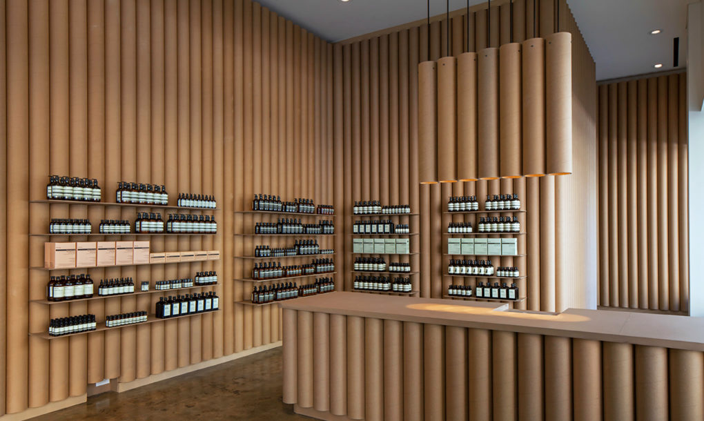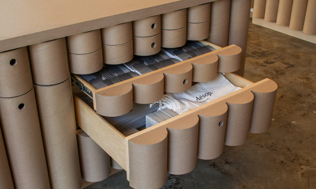 Šta raditi sa svim tim kartonskim tubama oko kojih su namotane tkanine i tekstili za modnu industriju? Uglavnom završe na reciklaži ali u ovom slučaju data im je potpuno nova uloga. Od njih je napravljen enterijer! Naime, kozmetička firma Aesop otvorila je novu prodavnicu u Los Anđelesu čiji je svaki element enterijera napravljen od ovog papirnog materijala.