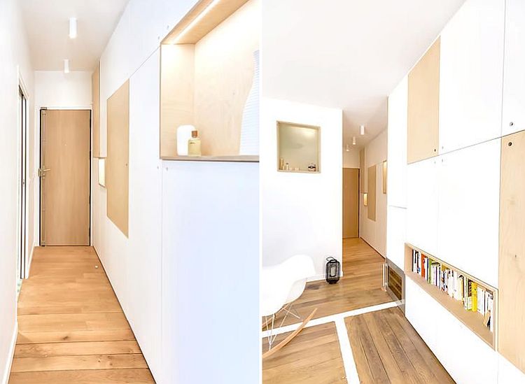 Arhitekta Richard Guilbault uspeo je da ovaj pariski stan od samo 30 metara kvadratnih u potpunosti transformiše za svoje klijente, mladi bračni par. Njihova želja je bila da se dobije dinamičan i prostran dnevni boravak, koji će sadržati u sebi i dosta prostora za skladištenje. Sve ovo je postignuto, ali u kompromisu sa spavaćom sobom, koja je do krajnih granica optimizovana.