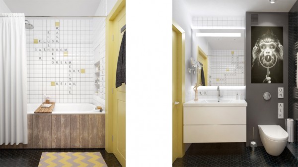 I u kupatilu su primenjena interesantna enterijerska rešenja. Od pločica su napravljene ukrštene reči…