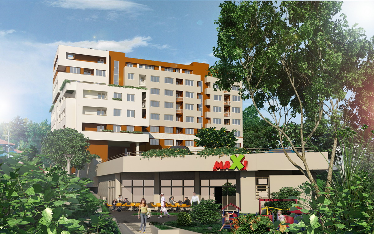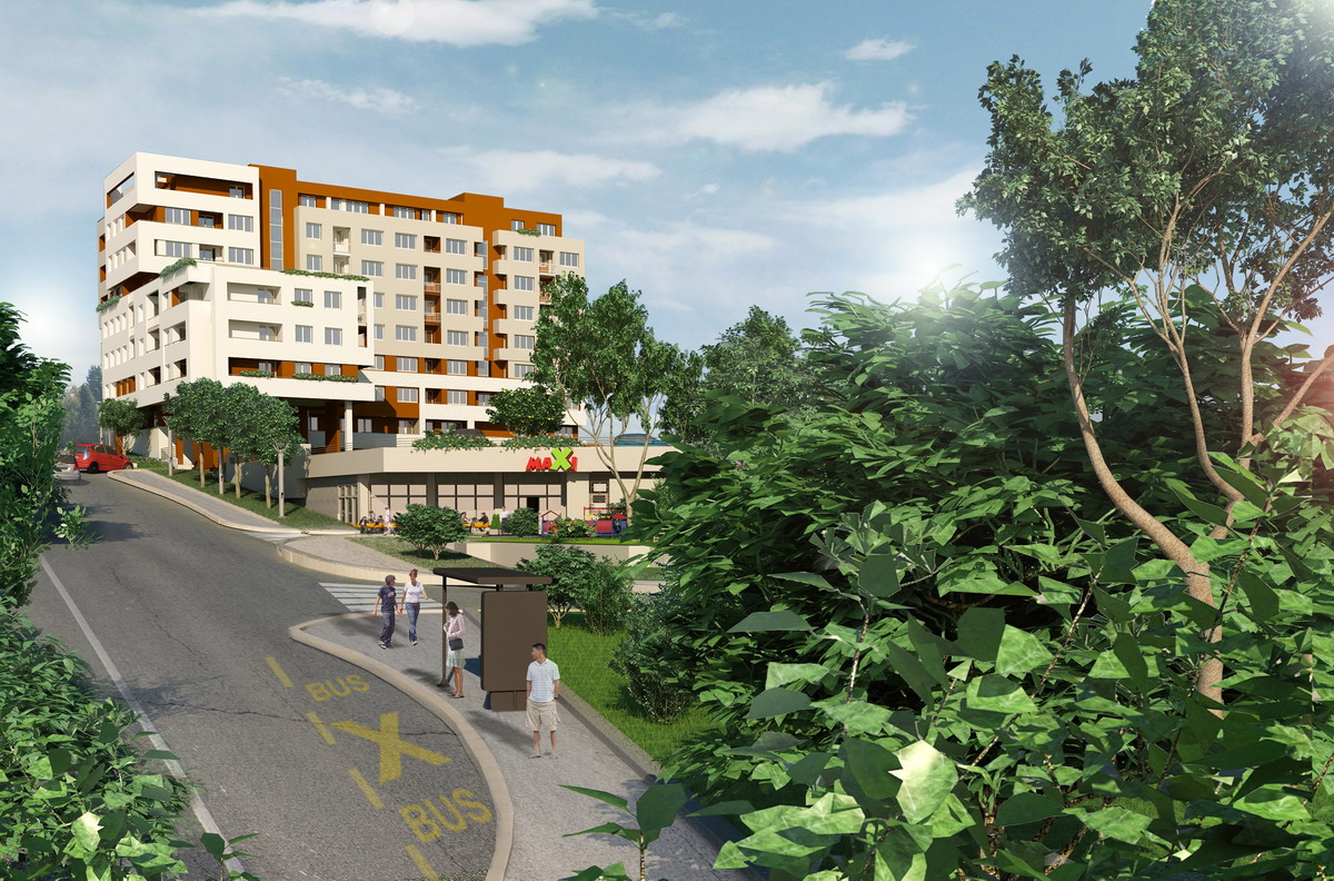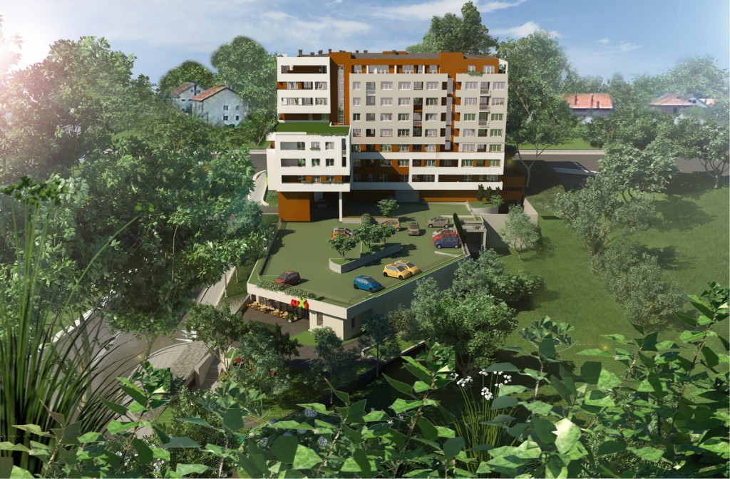 Objekat se nalazi na padini, pa poseduje kaskadno pejzažno rešenje i pristupe sa više nivoa. Dvospratna podzemna garaža će tako imati odvojen ulaz za svaki sprat kako bi se izbegla zadržavanja. U prizemnoj osnovi objekta nalaziće se supermarket, banka, apoteka, kafić, frizerski salon i drugi sadržaji koji će biti na dohvat ruke stanarima zgrade i okoline. Na toj osnovi biće podignuto 7 etaža sa 107 stambenih jedinica različitih struktura od 26 m2 do 93 m2. Stambeni kompleks ukupno ima 107 parking mesta od čega je 46 garažnih, a ostali će se nalaziti na platou koji će biti formiran na krovu komercijalnog dela objekta.