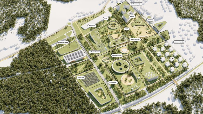 Značaj ovog kompleksa u podnožju nekadašnjeg kamenoloma je u tome što bi on volumenom bio ubačen u teren. Spuštanjem zelenog krova objekt bi pratio prirodnu konfiguraciju terena i obodne brze saobraćajnice – čime bi bio praktično nevidljiv. Kompleks bi trebao predstavljati idealan spoj arhitekture, urbanizma i pejzažnog uređenja. Kao takav, on najdirektnije prikazuje jednu od ključnih premisa studije – da je zelenilom moguće graditi.