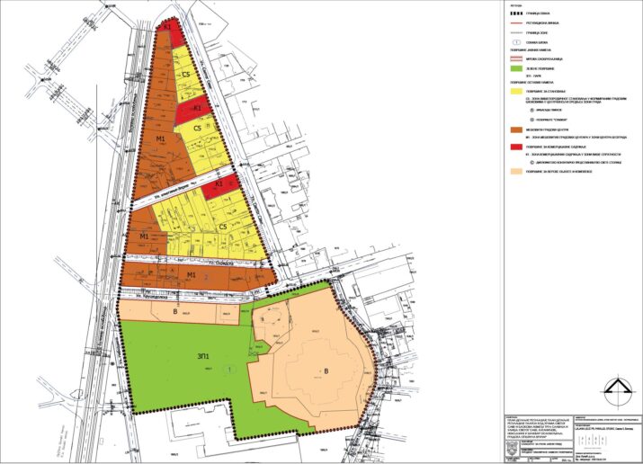 Granicom predloženom Izmenama i dopunama PDR-a razrađuje se prostor površine od oko 0,6 ha. Prema PGR-u, na predmetnoj lokaciji su planirane površine za stanovanje (zona višeporodičnog stanovanja u formiranim gradskim blokovima u centralnoj i srednjoj zoni grada – zona S5), mešoviti gradski centri u zoni više spratnosti (zona M4), te mreža saobraćajnica.