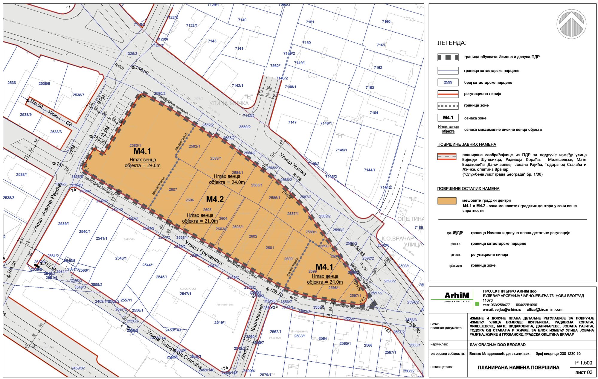 Drugi novi dokument na ranom javnom uvidu jesu Izmene i dopune plana detaljne regulacije za područje između ulica Vojvode Šupljikca, Radivoja Koraća, Mileševske, Mate Vidakovića, Daničareve, Jovana Rajića, Todora od Stalaća i Žičke, za blok između ulica Jovana Rajića, Žičke i Gružanske.