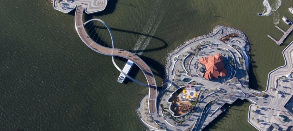 Pešački most koji meandrira baš kao i reka koju premošćava