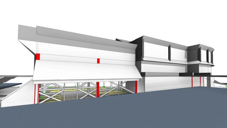 Kako bi se ostvarilo potrebnih minimum 1/3 otvora za potrebe otvorene garaže, predviđeno je rušenje dela spoljašnjih zidova na osi 2, između osa A i D sa istočne strane (strane ulaza), ka Ulici Palmira Toljatija, i na osi F, između osa 5 i 7 sa južne strane objekta ka Ulici Aleksinačkih rudara.