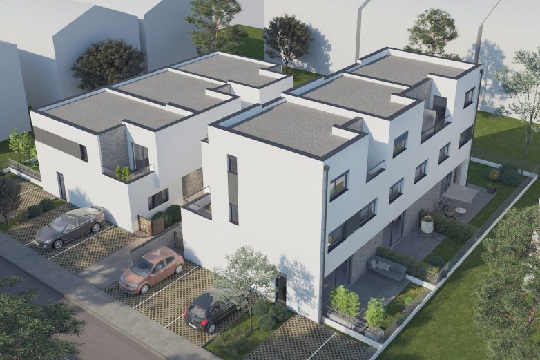 Stambene jedinice manje kvadrature sastoje se od prizemlja i sprata. Veće stambene jedinice imaju prizemlje i dva sprata. Svaka jedinica ima dvorište površine od 30 do 80 m2, kao i ostavu površine 4 m2, te prateće parking mesto.