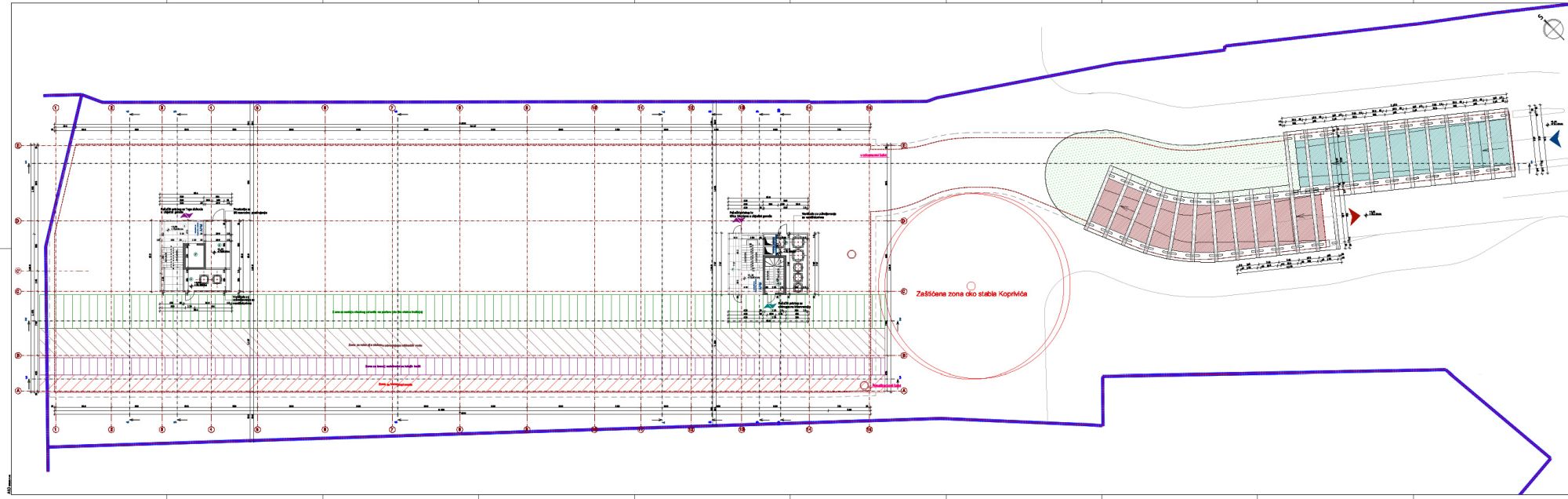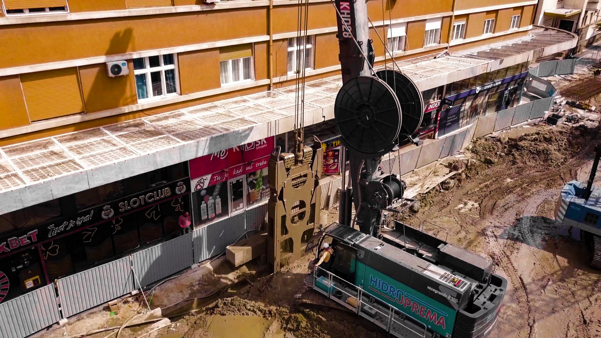 Van glavnog objekta su urađeni CFA šipovi za zaštitu iskopa za pristupne rampe. Izvršen je iskop u dubini od 4,5 m i napravljeni su platoi za izradu Benoto šipova koji su sastavni deo konstrukcije.