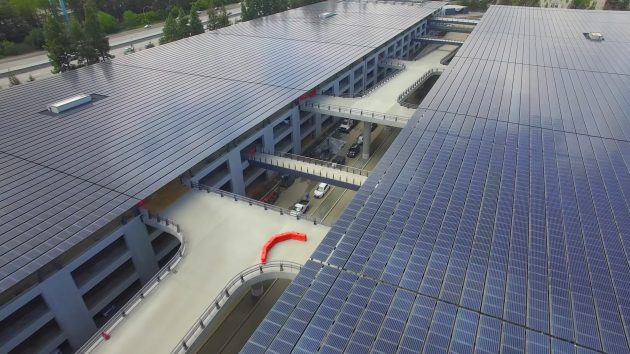 Na snimku zabeleženom dronom, može se videti i auditorijum sa 1.000 mesta, koji nosi ime po osnivaču Epla, Stivu Džobsu, piše Dezeen.