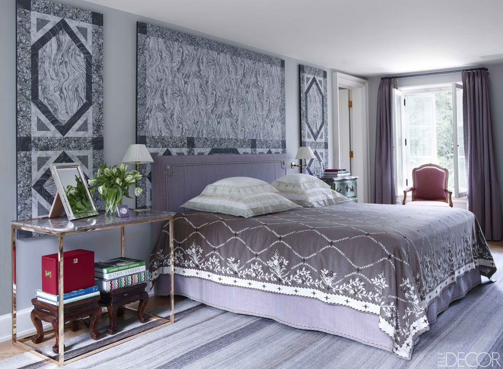 U spavaćoj sobi postavljene su tapete rađene po narudžbini dok je prekrivač od kašmira. Uzglavlje kreveta urađeno je od istog materijala kao i draperije.