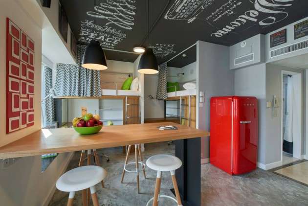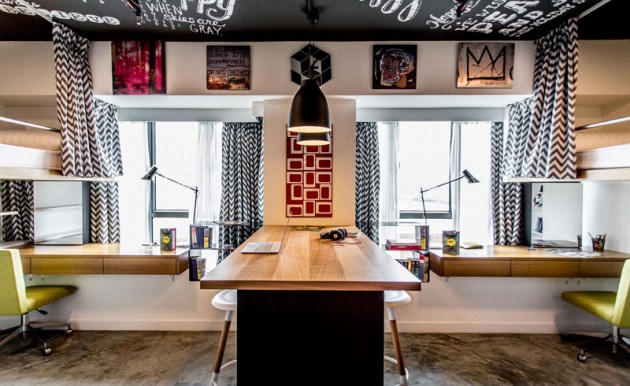 Novi studentski apartmani nastali su spajanjem dve nekadašnje hotelske sobe. Pregradni zid koji ih je nekada delio, sada je zamenjen visokim stolom, koji studentima služi za učenje ili druženje.