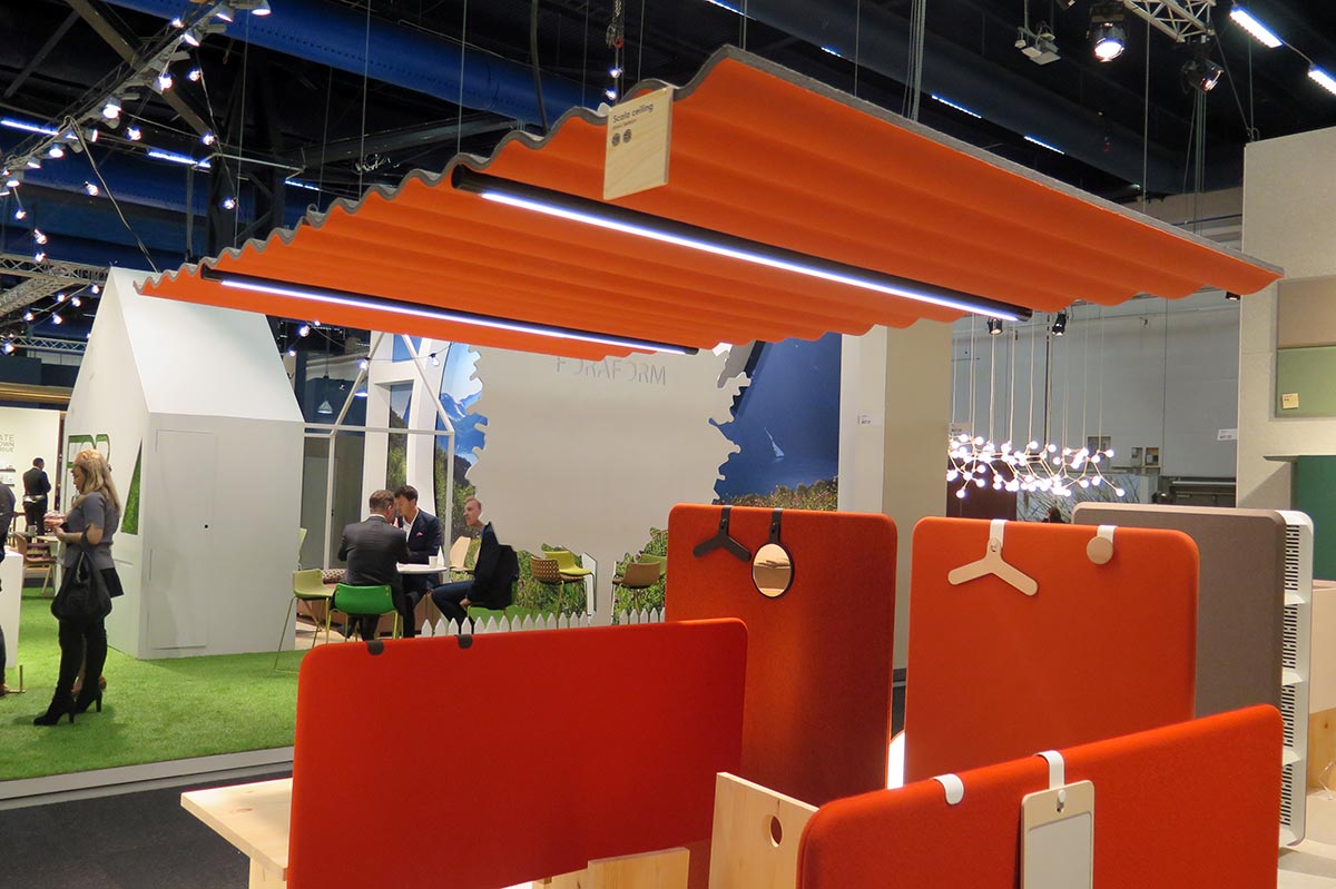 Većina proizvođača kancelarijskog nameštaja predstavila je komade koji i u bučnim prostorijama mogu da vam pruže mir i tišinu. Ostrva za opuštanje ili rad obložena materijalom koji apsorbuje zvuk, mogli smo videti na svakom koraku. Osim za kancelarije, proizvođači navode da se njihova primena može pronaći i u školama, fakultetima ili drugim prostorima u kojima je veliki broj ljudi u jednom prostoru.