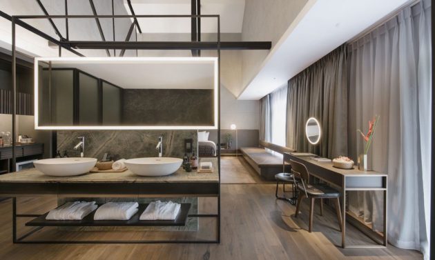 Enterijer je priča za sebe. Estetika industrijskih objekata je potpuno zadržana kroz zidove od opeke, zasvođene tavanice i vidljive konstrukcije krova. Međutim, utilitaristička estetika obogaćena je savremenom dekoracijom i rasvetom koji ovom hotelu daju nesvakidašnji posh izgled.